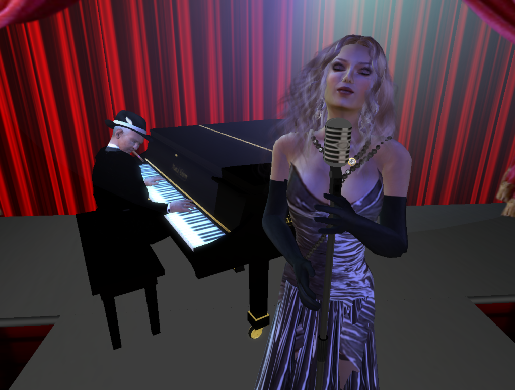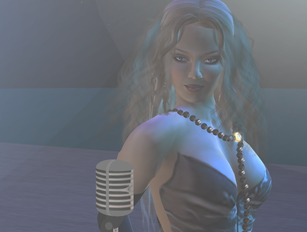 In that same series, we featured Bea and Sid (along with yours truly) in a scene suggesting that Bea, in her MYTH outfit, was a pop star. Titled "Playing to Her Fans", this piece, while losing at the contest, was included in the Flickr site of SL Expressions, dedicated to photos of Second Life avatars using facial emotes, something we take pride in at Phototgenix